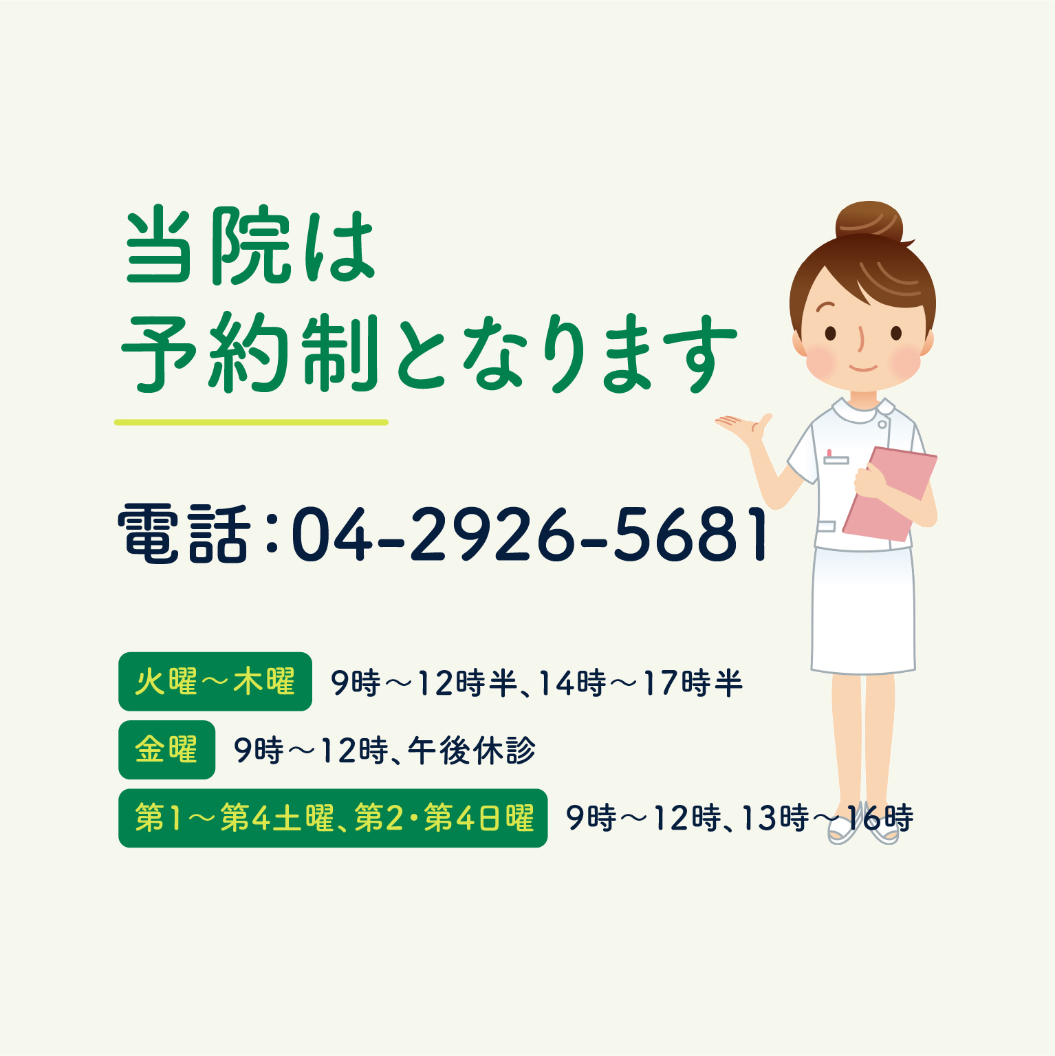 これまでどおり予約制となっておりますので、初診、臨時受診をご希望の際は事前に電話でお問い合わせください。